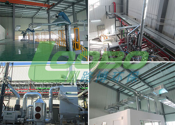 一般噴漆車間廢氣處理工藝為水簾柜,它可以去除約80%漆霧粒子,后面有漆霧過濾棉進行深度過濾。